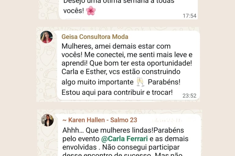 I – Motivação e Desenvolvimento Pessoal – com Carla Ferrari e Maria Esther, trabalhando crenças e padrões limitantes.